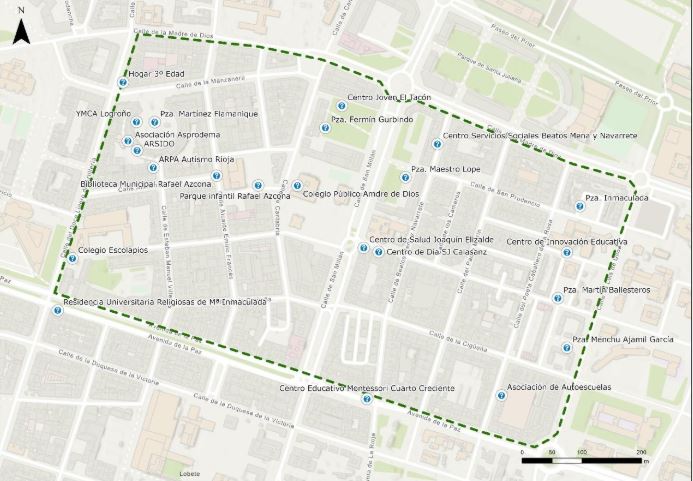 Dentro de la ZBE se ubican los siguientes espacios públicos y equipamientos relevantes: